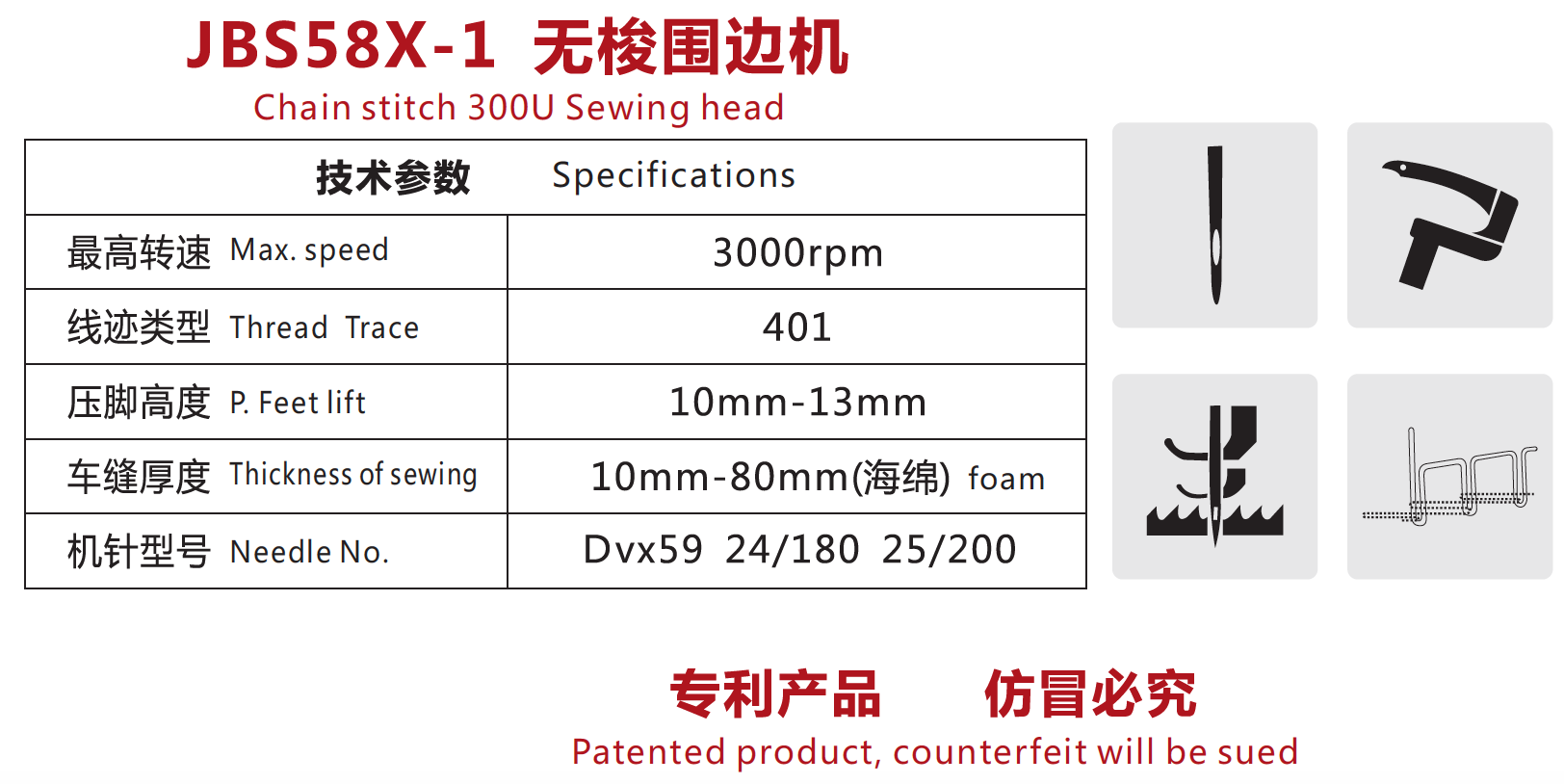无梭围边机 JBS58X-1 None Shuttle Cylinder Sewing head
